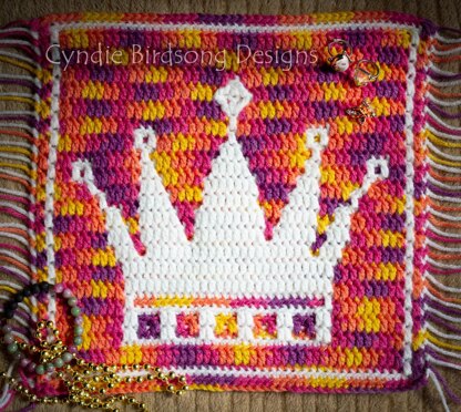 You will need 2 colors of yarn - one for the background and one for the crown. This is a great way to use up scraps! For projects using 2 colors, (one for the background & one for the featured design), you will need approximately 2 oz of each color for a worsted or aran (wt 4) type of yarn.