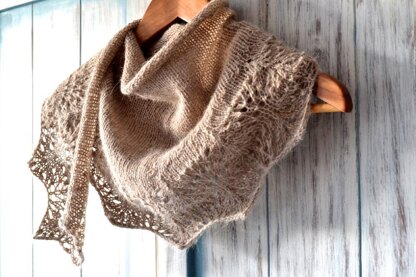 A quick and light knit, this crescent shaped shawlette has a lacy edge and is worked from the bottom up.