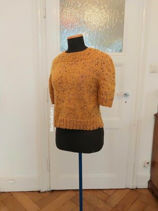 The sweater is worked flat and consists of 4 parts that are then sewn together. Only the collar is worked in rounds.