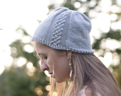 Braided cables billow up the side of this hat like clouds skittering across the evening sky - puffy, soft, and dreamlike.