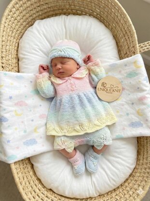 This beautiful romper suit knitting pattern is suitable for a 0 - 3 Month old baby or a 16 -22" Reborn doll