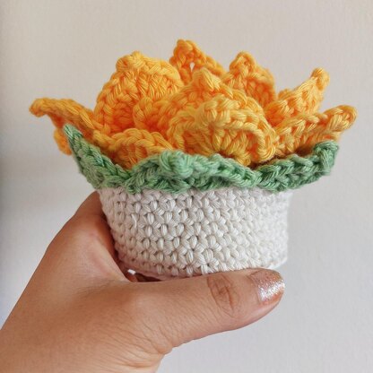 CONSTRUCTION This SUNFLOWER- shaped coaster is worked in the round without turning at the end of each round. You will work 5 rounds in total in order to complete the coasters and the right side of your work will be always facing you.