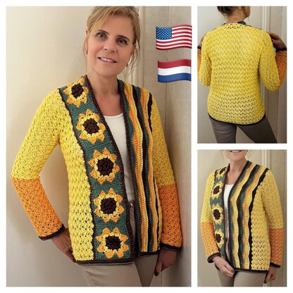 Make your own sunflower power cardigan, or make one for that very special person.