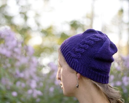 Construction notes Basic hat construction from the twisted rib brim to the gathered crown keeps this project simple while showing off the blooming cable that runs up one side.