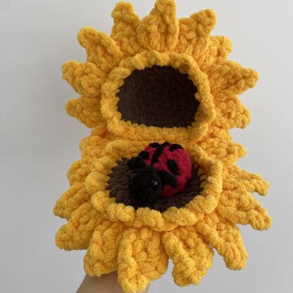 The Sunny Sunflower is part of the ‘Hiding Places’ Interactive Crochet Toy Pattern series designed for imaginative play. Hidden beneath the sunflower petals is a little ladybug waiting to be discovered. This pattern was created to inspire curiosity in young minds, encouraging them to explore and interact with the world around them.