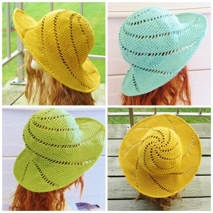 This is a must have pattern for summer. It features a swirl design that extends seamlessly onto the brim.