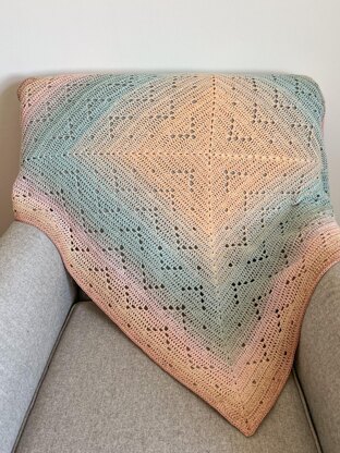 The Sunset Rays blanket is crocheted in the round and would be suited to an intermediate crocheter or a confident beginner. The pattern includes instructions and images for the first 13 rounds. From round 14 notes and diagrams are included to help you continue through the pattern.