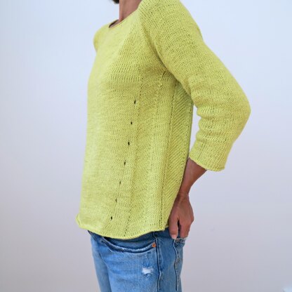 This pullover is quite simple in appearance, but comes with a few little design details that make it special. The A-line body shape makes it flattering on many body types. Intended to fit with ½ to 3 inches of ease at the bust.