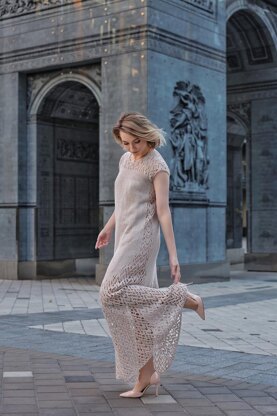 “Sunshine through the rain” dress is worked from the bottom up in one piece in the round. At armhole level, work is divided into Front and Back, which are finished separately, shoulder seams are joined using the three-needle bind-off method.