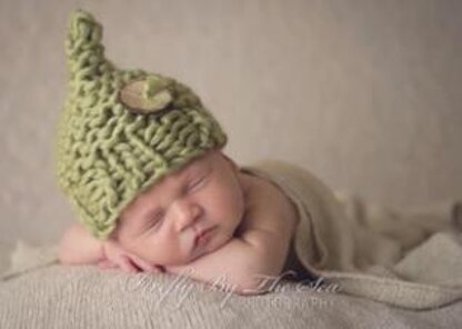 Worked in garter stitch, the sweet gnome/pixie hat would make a wonderful gift.