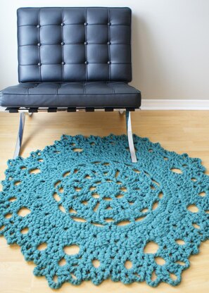 This Chunky Doily Rug is crocheted using six strands of acrylic yarn to create a modern over-sized rug. By crocheting the pattern and ending at different rounds this pattern shows you how to make 8 different sizes of rugs that all have their own unique style. With pictures and written instructions included with the pattern, this is an easy to follow how-to.