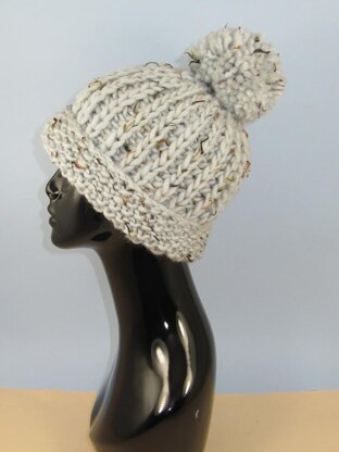 Super Chunky Moss Stitch Cuff Fishermans Rib Bobble Beanie Hat