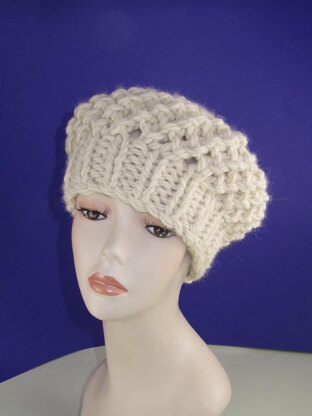 This is my Super Chunky Simple Lace Tam Beret Hat knitting pattern. This fantastic hat knits up in less than 2 hours.