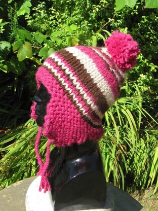 This is my Superchunky Stripe Peruvian Bobble Trapper Hat knitting pattern. This amazing unisex trapper hat is perfect for winter wear as its really thick and warm. Its worked flat with super chunky yarn so only takes about 2 hours to make. The knitting pattern provides full instructions for 4 sizes XS (baby-toddler), S (child-teen), M (teen/woman),and L (woman/man).