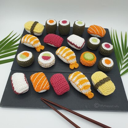Sushi small set is very easy to follow with a lot of photos. You can make it as a gift for someone who loves Sushi or as a toy for kids. Do not hesitate to make your own cute amigurumi. I'm sure they will love these Sushi. Crochet toys can also be used as a kitchen decor.
