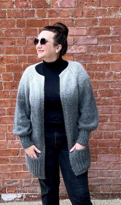 The Susurrus Cardi is a raglan style sweater, knit flat, from the top down, and seamless (except for the optional pockets). The sleeves are knit in the round.