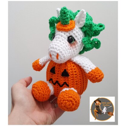 Would you call this one a Pumpkincorn or Unikin? - SWC Pumpkin Unicorn Crochet Pattern is here!! Your finished Pumpkin Unicorn is roughly 8" tall when using the yarn and hook size instructed in the pattern. This 9 page written crochet pattern is in English using UK crochet terminology and includes detailed instructions with photos to guide you through the pattern.