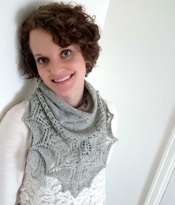 Swedish Spring is a top-down triangular shawl that begins with a subtle texture and stockinette stitch in the main body that transitions into a mesh arrow lace, and finishes with a pointy lace edging.