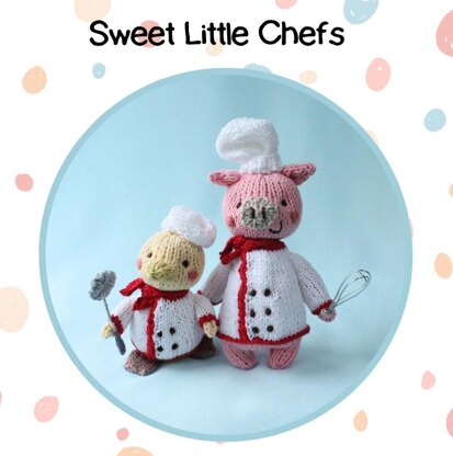 The animals hold cooking tools made with the knitted piece and wire. Omit them if you are giving the toys to a child.