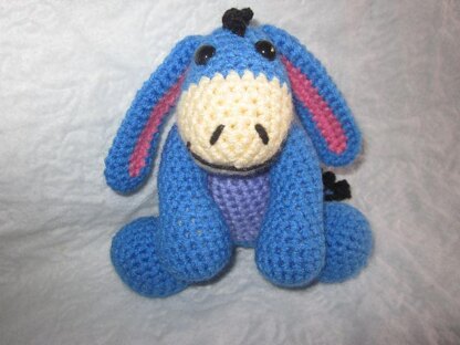 Eeyore is finally here to join [Pooh Bear][1]. He measures approx. 8 1/2 inches when laying flat from head to foot. This is a 6 page pdf with many helpful pictures.