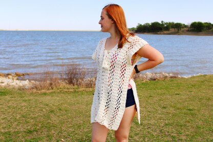 The Sweet Pea Cover Up is a flirty and boho style design that can be worn by the water or as a layering accessory around town. Its flowy fit allows for comfortable movement if you are playing in the sand or surf. Designed to flatter your natural body shape, the Sweet Pea Cover Up also provides enough coverage to avoid feeling too exposed. A drawstring cinches the front of this piece together, with adorable tassels to add a little bit of fun. It is made with soft DK weight cotton-blend yarn so that the fabric has a beautiful drape and is breathable during warm weather. This fabric has a texture that mimics the shape of the sweet pea flower petals with an additional unique and simple mesh detail along the edge to add interest and texture. It is an advanced beginner pattern with repeated stitch patterns throughout, making it fairly quick and easy to work up. This pattern uses US terminology in sizes XS-5X and is designed with 1-4" of positive ease.