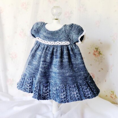 This simple top down raglan dress features puff sleeves trimmed in lace, an intricate lace waistband and a full skirt with an easy lace border. Delicate, sweet and perfect for newborn to toddlers.