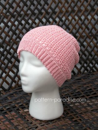 This pretty and simple hat is just right for warmer months or for someone who doesn't want bulk. I made it with two strands of #10 crochet thread, but you could use any similar weight thread or yarn (consider #3 thread or light fingering yarn)!