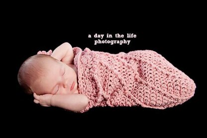 This cuddle cocoon and hat pattern is so sweet for a newborn. Beautiful for pictures, and works up fairly fast.