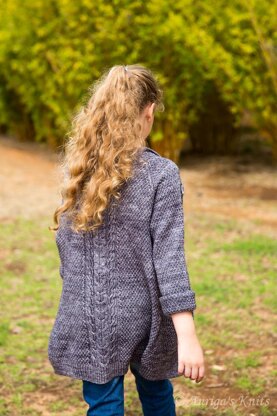 The cardigan is worked top down. Creating a proper neckline (the front is deeper than the back) the yoke is formed by using raglan increases. Then the body is separated from the sleeves (using a stitch holder or a scrap yarn) and worked even until the pockets, which are incorporated into the body of the cardigan (the outer part of the pockets). The inner part of the pockets is added later. Sleeves are picked up from the stitch holder and worked in round, the neckband and the button bands are picked up and worked back and forth. Seaming is required only to attach the inner part of the pockets to the front.