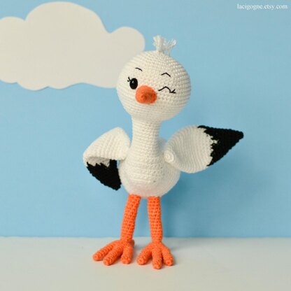 Sydney the stork crochet amigurumi pattern is a 7-page document. The stork is 19 cm / 7.4 in if you use same weight yarn and a crochet hook. Crochet stork is a perfect gift-souvenir for the families who are waiting for a baby, for Easter and a birthday of a child. You can also use it as a home decoration.