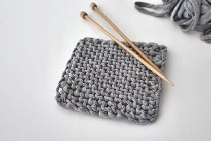 After I turned my husband's old Guns N' Roses t-shirt into DIY t-shirt yarn, I almost immediately set out to make this handy little potholder. It feels so good to turn something I would have otherwise thrown away into a practical, useful item. And seeing the upcycling process through from start to finish was so satisfying! Whether you buy or diy your t-shirt yarn, anyone from beginner to advanced could enjoy this quick, simple pattern.