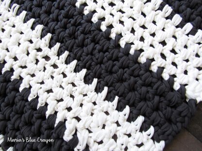 This t-shirt yarn rug is super easy and very quick to make! Using a cotton t-shirt styled yarn, this rug is sturdy, plush, and perfect for the bath and/or kitchen!