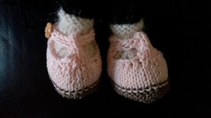 These T-strap Mary Jane type shoes are designed to fit the long feet on any of my Painted Cricket animals. They start at the middle of the sole and work up to the strap and button.