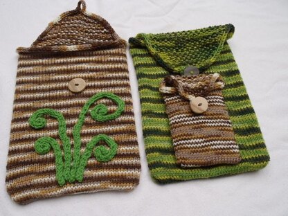 The tablet or phone cover is knitted from top down, with seed stitch for the flap and stockinette for the body. I-cord around the edge gives it a nice finish. Finished Size: Tablet cover I. is 7 ½” (19 cm) wide and 11” (28 cm) long. Tablet cover II is 8” (21 cm) wide and 11” (28 cm) long I-pad cover is 8” (21 cm) wide and 9 ½” (24 cm) long. Phone cover is 3.5” (9 cm) wide and 6” (15 cm) long. Yardage: 190 – 200 yards / 173 – 183 meters (tablet cover I), 195 – 210 yards / 178 – 192 meters (tablet cover II), 190 – 205 yards / 173 – 187 meters (I-pad cover), 60 – 65 yards /55 – 59 meters (phone cover)