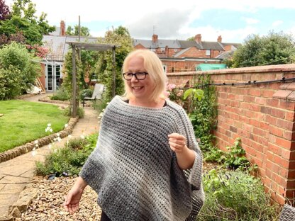 This poncho can be made with self-striping or variegated yarn to allow you create a bold statement or you could use a solid colour and create your own stripes