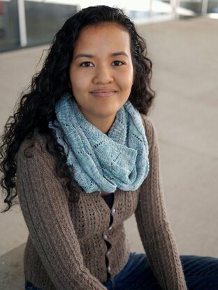 This light, squishy cowl in three sizes (S/M/L) transitions beautifully across several seasons when beautiful days are cooler, but not cold enough for an outerwear layer. Wear long and loose in a simple ring and double it up when the wind swirls—this piece features a reversible openwork pattern that makes styling a cinch. The movement of the motif creates a wavy effect that plays well with streaky natural shades or hand-dyed colorways. The simple stitchwork and highly portable, circular construction make this a great project for lace newbies and one that experienced knitters will enjoy it as a fun option for travel or gift knitting.