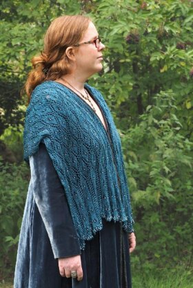 Talea is inspired by the gown in Soul of the Rose, a painting by John William Waterhouse. The undulating trellis of roses in the body of the stole comes from the fabric texture, and the fluttery ends mimics the draping of the gown. The ends of the stole flare slightly, and are weighted with a zigzag of beads for both sparkle and drape. The second end is cast on separately and grafted to the body of the shawl. This pattern can be worked to any length to maximise yarn usage.
