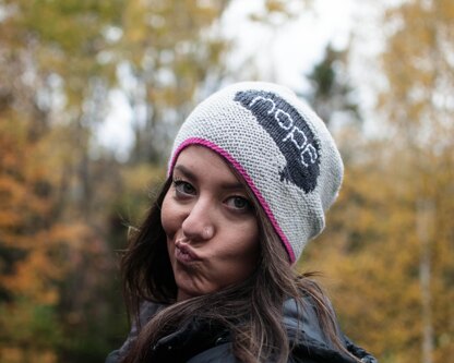 Talking Heads is a cosy and slouchy hat with something to say. The hat is worked in the round, including a speech bubble in stockinette intarsia on a garter stitch background. Once the hat is completed, you can express yourself with some embroidered lettering.