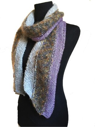For the scarf shown in the picture above I used three different colors of Noro Kyreon. Size: 6” (15 cm) wide and 60” (152 cm) long Material: • Needles size US 7 (4.5 mm) • Approx. 327 yard (300m) worsted weight yarn