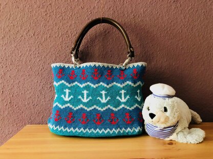 Diese tolle maritime Tasche wird in der Tapestry-Technik gehäkelt. Damit hast du deinen letzten Urlaub am Meer immer dabei!