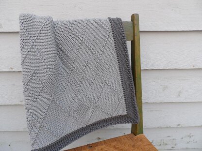 An intricate knit/purl pattern makes a lovely baby blanket or throw that doesn’t require intensive blocking whenever it’s washed, making it a perfect gift. Two border options are given - a bit of a ruffly one and a flat band. The border is worked last making it is easy to knit it in a second color. If you have plenty of yarn and are so inclined, the ruffle can be made larger.