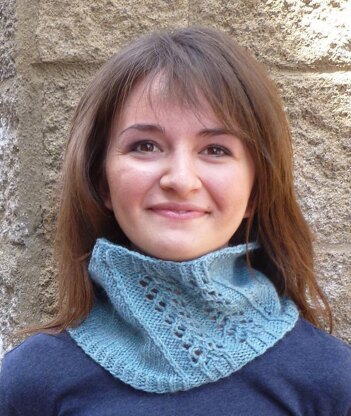 Tearsa has an elegant sliding lace pattern that swirls around the cowl.