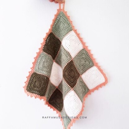 The Teatime Dishcloth is a classic washcloth made by assembling solid granny squares in a gingham pattern.