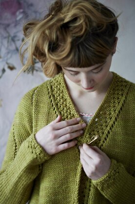 A swingy cardigan with soft, curving eyelets that shape the yoke and body, echoed by pops of lace detail - a balance of clean lines, femininity and playfulness.