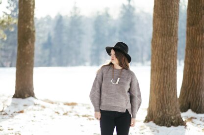 Sample shown in Ritual Dyes Elder (100% Rambouillet wool) in colorway “Smoke”. 5 (5, 5, 6, 7, 7) {8, 8, 8, 9} skeins of Elder are needed to meet yardage requirements.