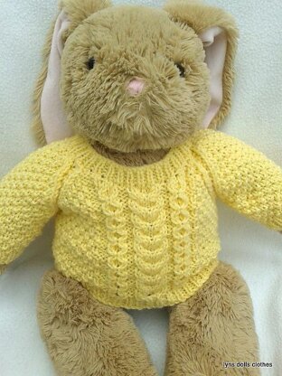 This is an easy aran pattern with repeat over only 4 rows, with a cable centre and double moss stitch sides (great for beginers). The pattern has a ragan sleeve for a good fit.