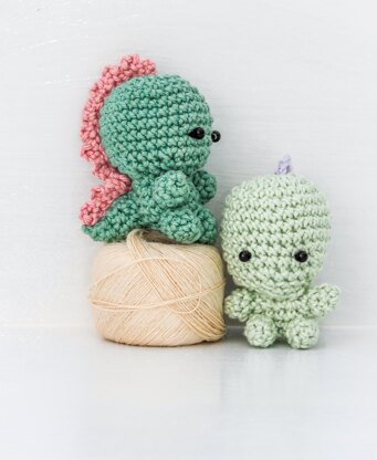This is a pattern with all the instructions you need to create a teeny tiny dinosaur of just over 2 inches tall.