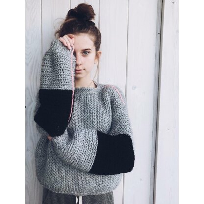 The length is adjustable. Materials> * In total 750(900,1050,1200,1350,1500) meters / 820(1000,1150,1300,1500,1650) yds for the cropped sweater of which 20 meters / 22 yds is color 2 (seams) and 100(100,150,150,150,200) meters / 110(110,164,164,164,218) yds of color 3 (here black stripe of the slevees).