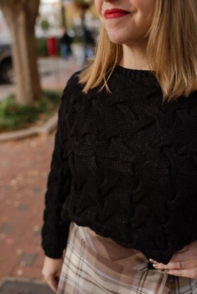 With squishy cables throughout, this statement pullover is gloriously cozy. This blousy dolman-shaped sweater is worked sideways across the first sleeve, then the armhole section, followed by the second sleeve. Stitches are picked up and knit to be worked top-down for the body, making body length adjustments easy. Luscious cables twisting every which way provide contrasting textural drape. You’ll want to wear it with your soft pants just as often as you dress it up. No matter how deep your color choice is, these cables will pop.