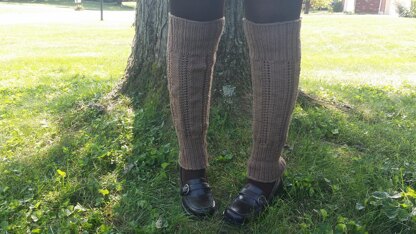 Sizing: The pattern is for one size but easily adjustable for height. You can take out or add length in any of the three sections. As long as you are consistent, it won't present a problem. They are intended to hit at the top of the knee. (But, that only matters in the sense that you want them to cling to your leg, and if they hit lower, they will be a bit looser.)